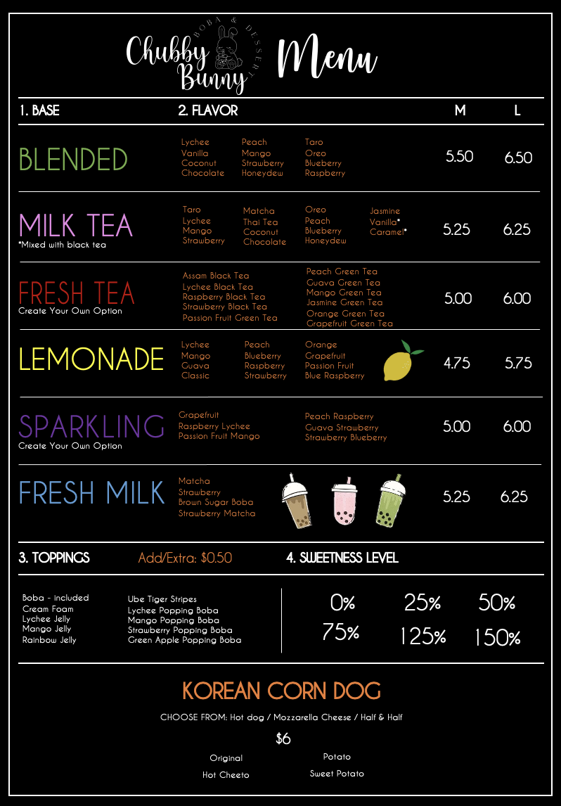 Chubby Bunny Boba Menu